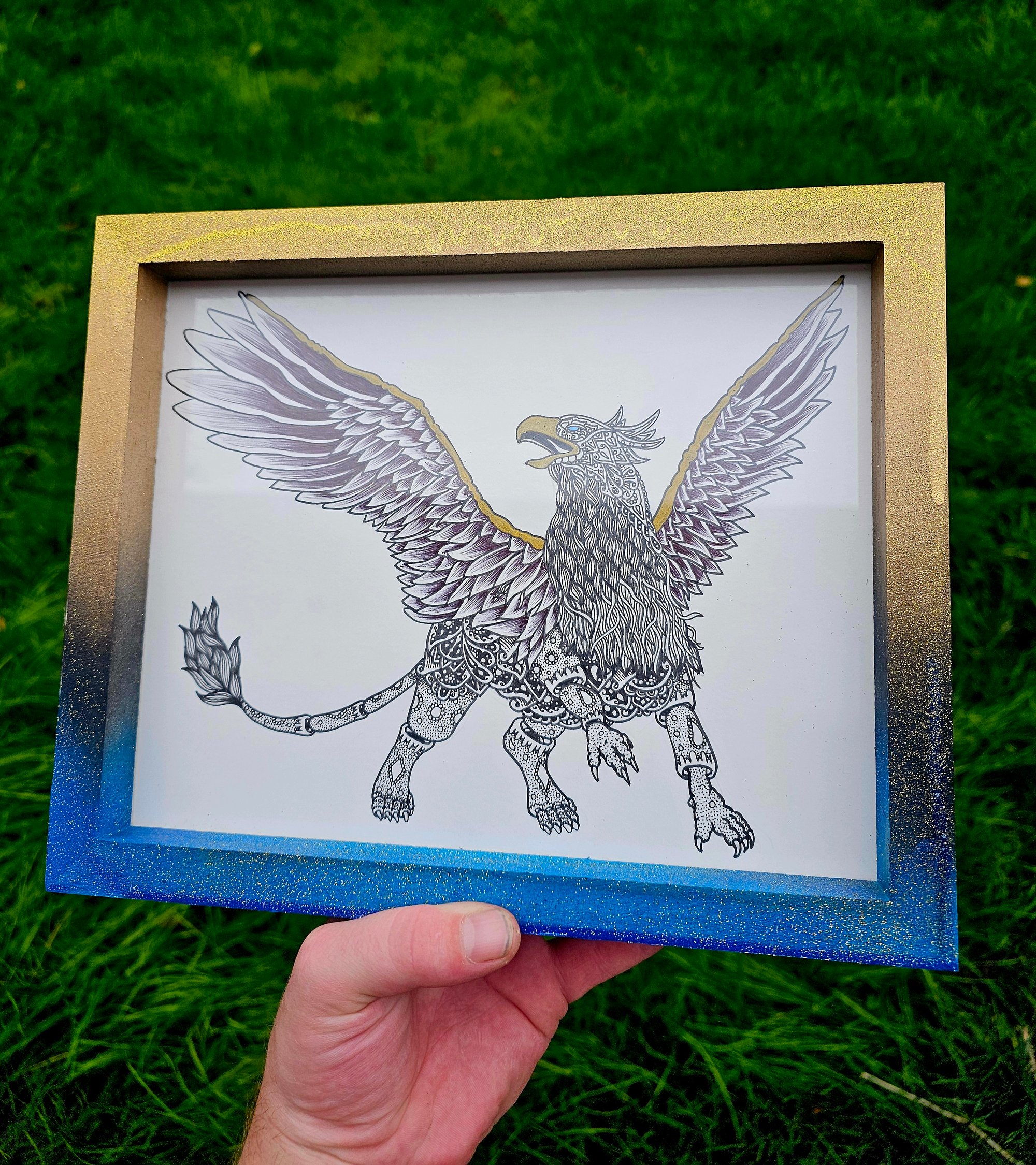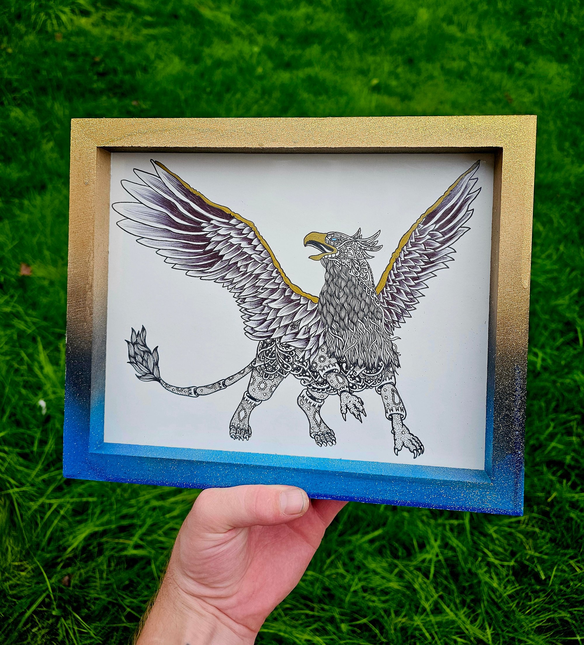 A griffin is a legendary creature with the body, tail, and back legs of a lion, combined with the head and wings of an eagle