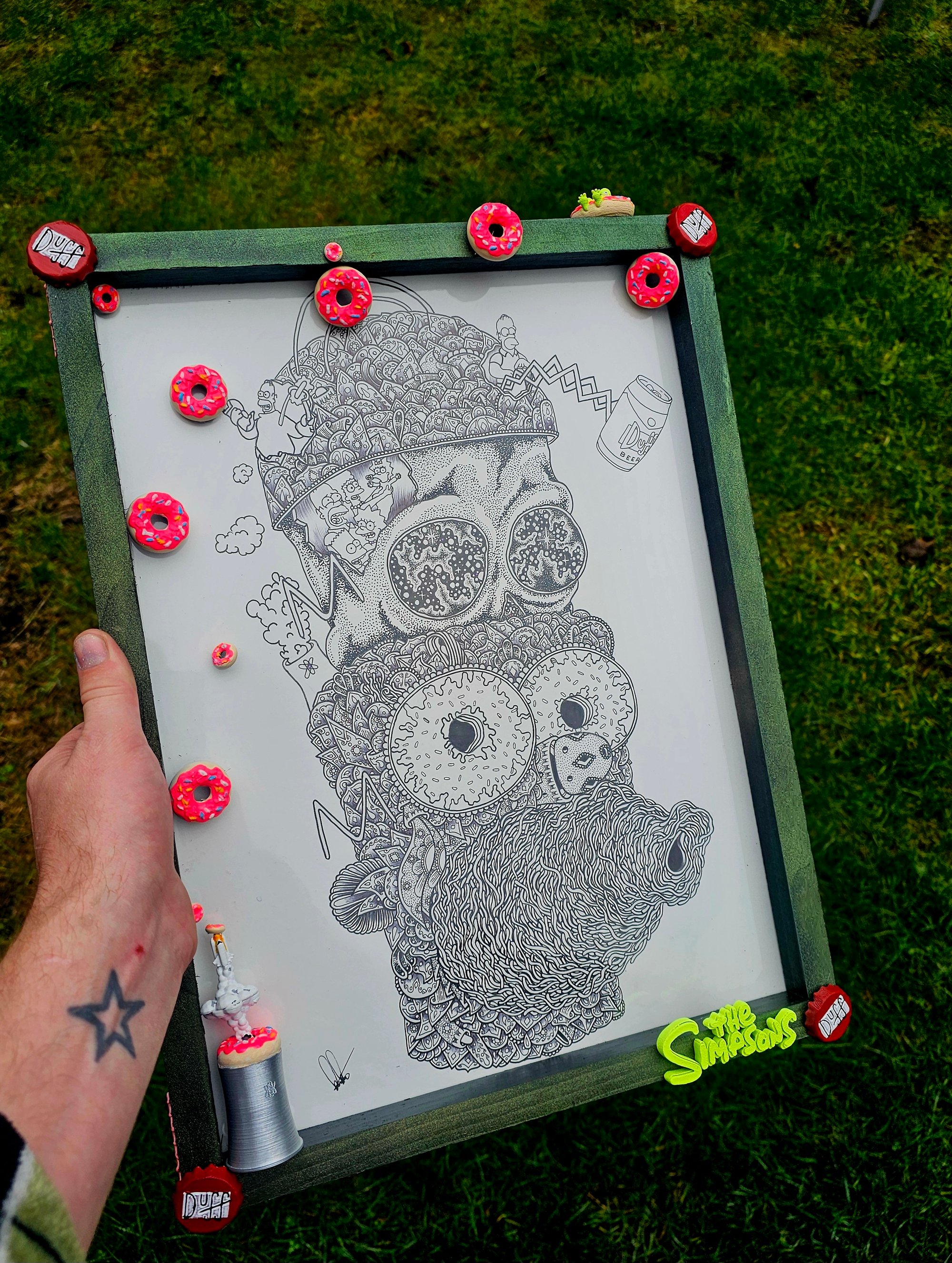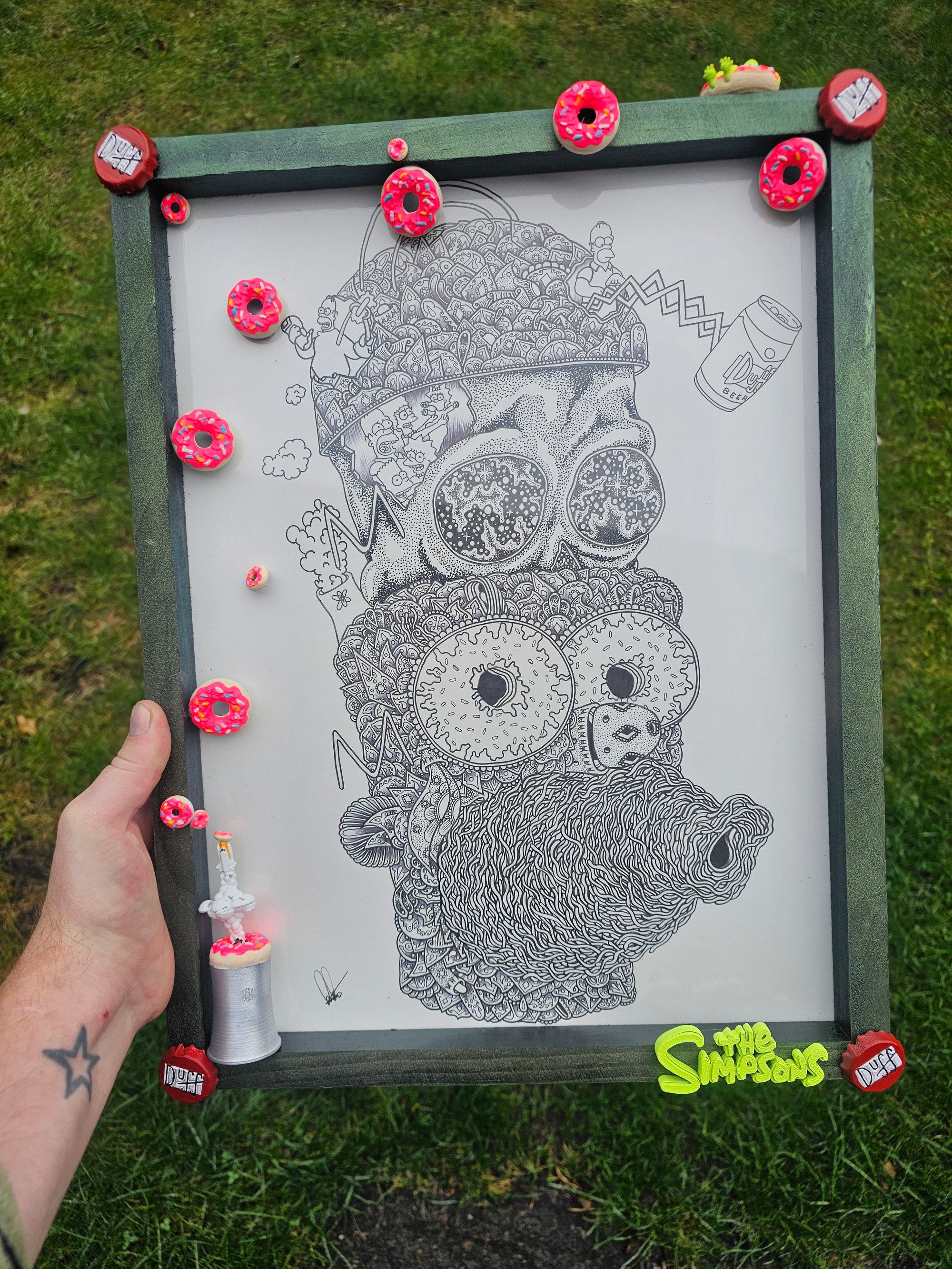 Onate homer original artwork from the simpsons series this one focusing on family life and the everyday dad struggle