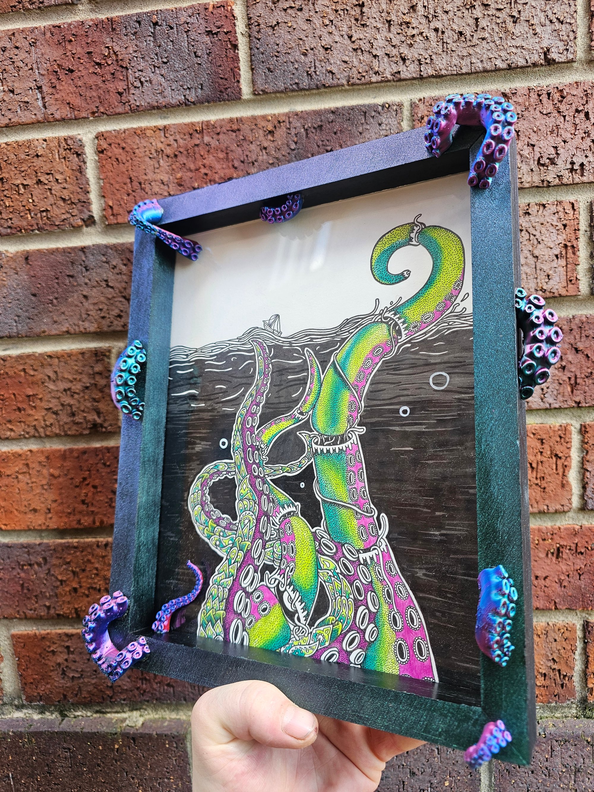 Framed size (minus tenticals ) 8.7 inch x 10.8 inch