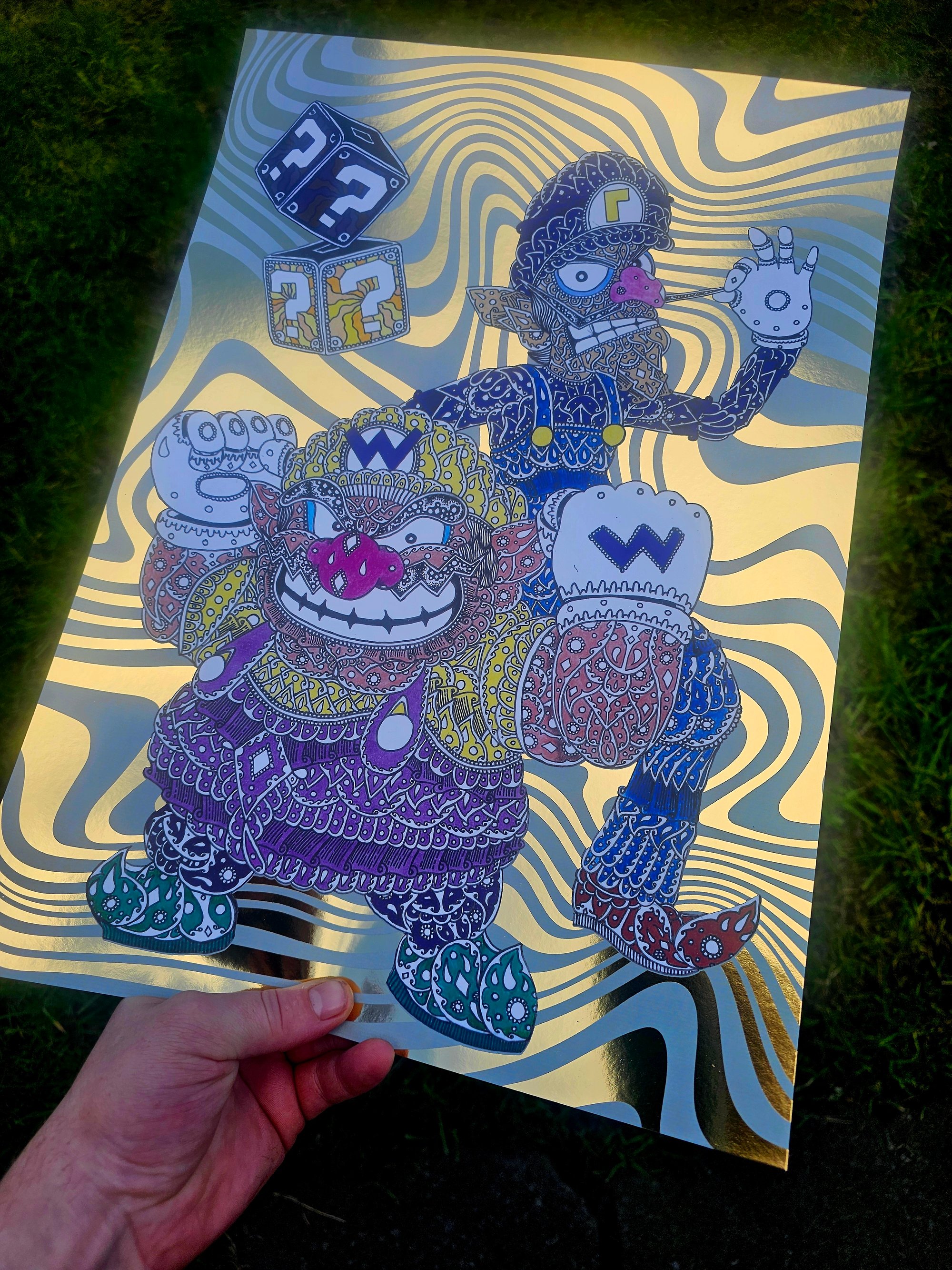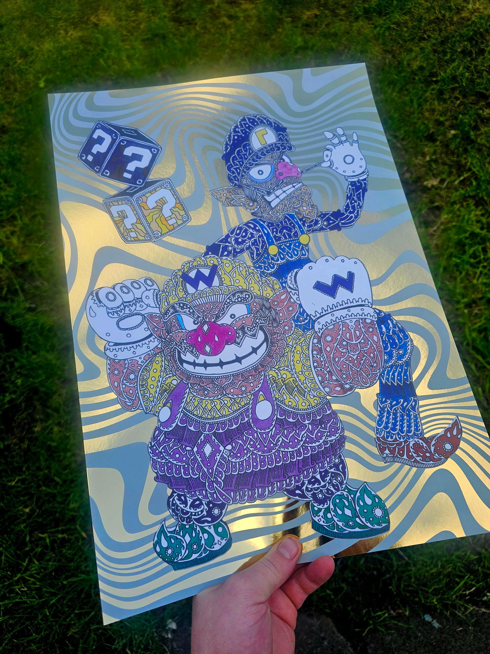 ornate waluigi and luigi foil print